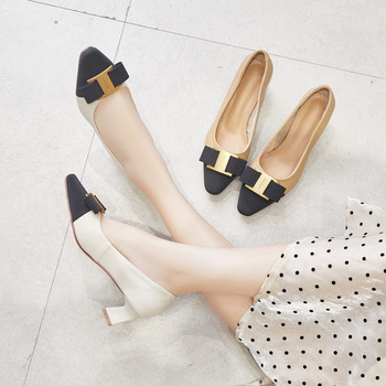 Estilo francés, novedad de verano, tacones altos, zapatos de tacón para mujer, punta estrecha, moda, tacón grueso, bloque de Color, hebilla de Metal, zapatos individuales informales